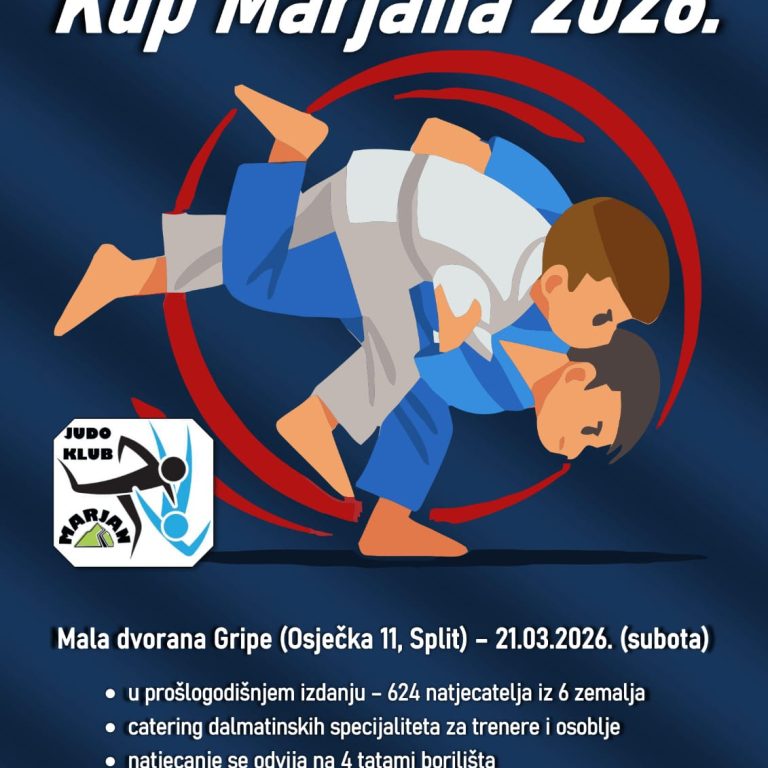 Mala dvorana ŠC Gripe u subotu, 21. ožujka 2026., postaje središte međunarodnog juda. Tradicionalni turnir u organizaciji Judo kluba Marjan…